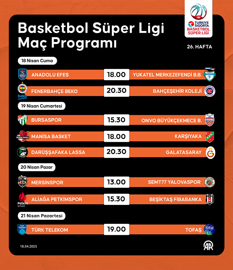 Türkiye Basketbol Federasyonundan (TBF) yapılan açıklamaya göre, liglerde haftanın programı şöyle: