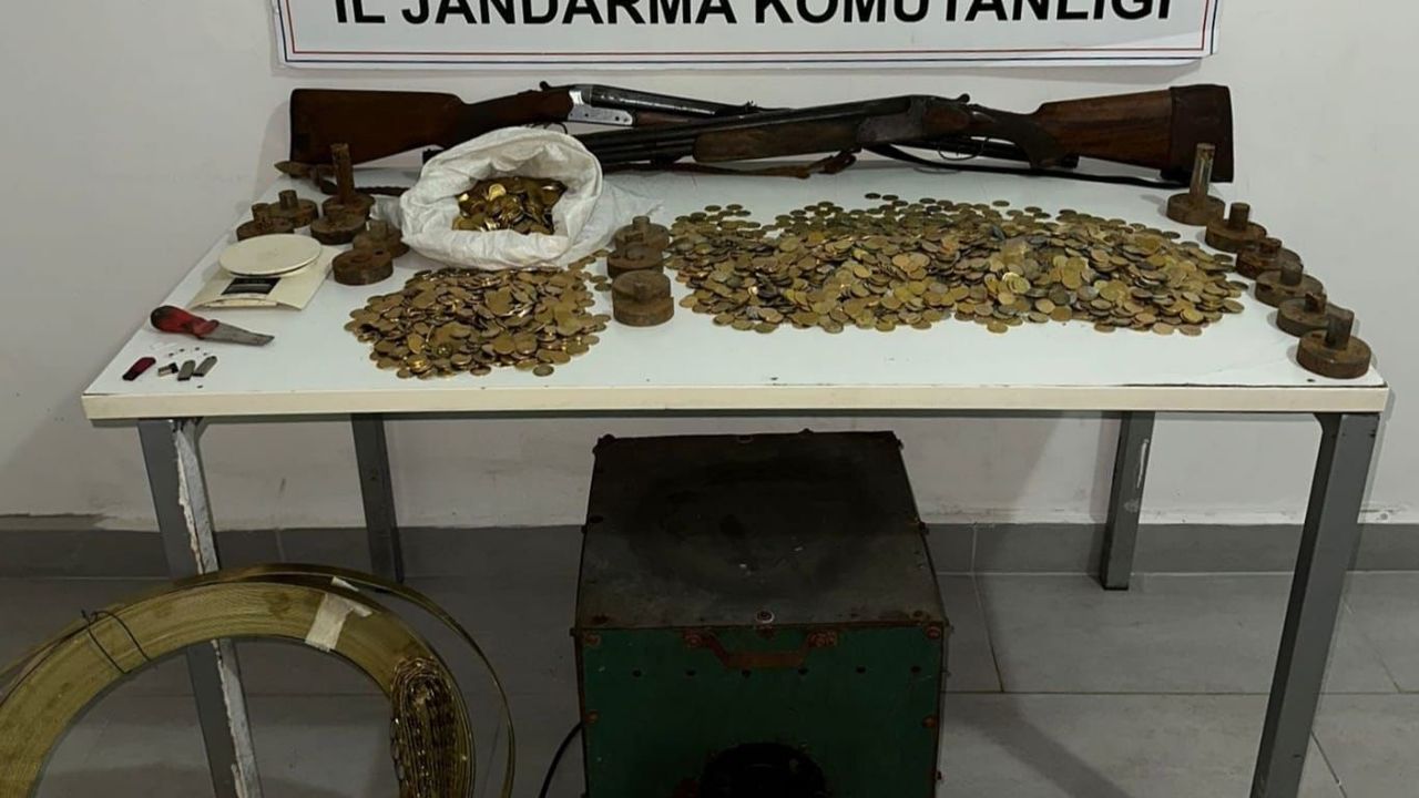 Üzerindeki sahte kimlikle yakalanan firari hükümlünün ikametinde yapılan aramada ise 2 adet ruhsatsız av tüfeği, 15 adet altın kalıbı, 2 bin 860 adet basıma hazır sahte altın, 2 bin 756 adet basılmış sahte altın, 1 adet sahte altın üretiminde kullanılan temizleme makinası, sahte altın üretiminde kullanılan çok sayıda makina ve materyal ele geçirildi.