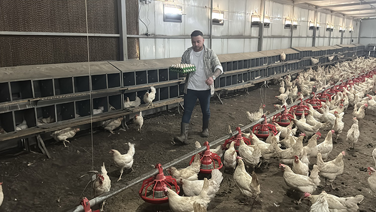 Modern kümeslerdeki tavukların doğal yemleme tekniğiyle verimini artıran Akça, çiftliğini yaklaşık 14 bin tavukluk işletmeye dönüştürdü.