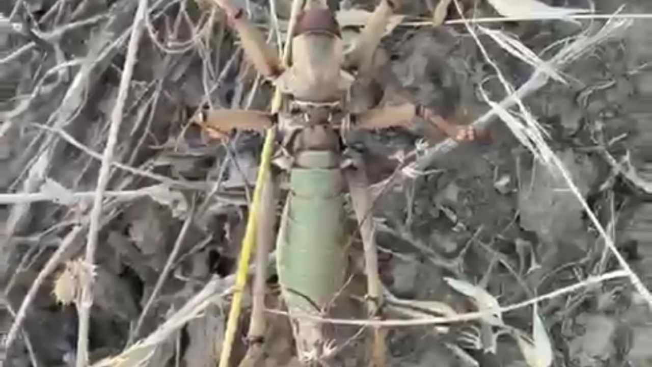 Gündem Haber - Çekirgeyi gören vatandaşlar büyük şaşkınlık yaşarken, cep telefonlarıyla görüntü almakla yetindi. Edinilen bilgilere göre bir vatandaş, kırsalda bulduğu dev çekirgeyi doğadan alıp kendi özel aracıyla şehir merkezine taşıdı. Uzmanlar ise özellikle yaz aylarında daha sık görülen bu tür etçil çekirgelerin insanlara zarar vermediğini, aksine tarıma zararlı böceklerle beslendiklerini belirterek endişeye gerek olmadığını ifade etti.