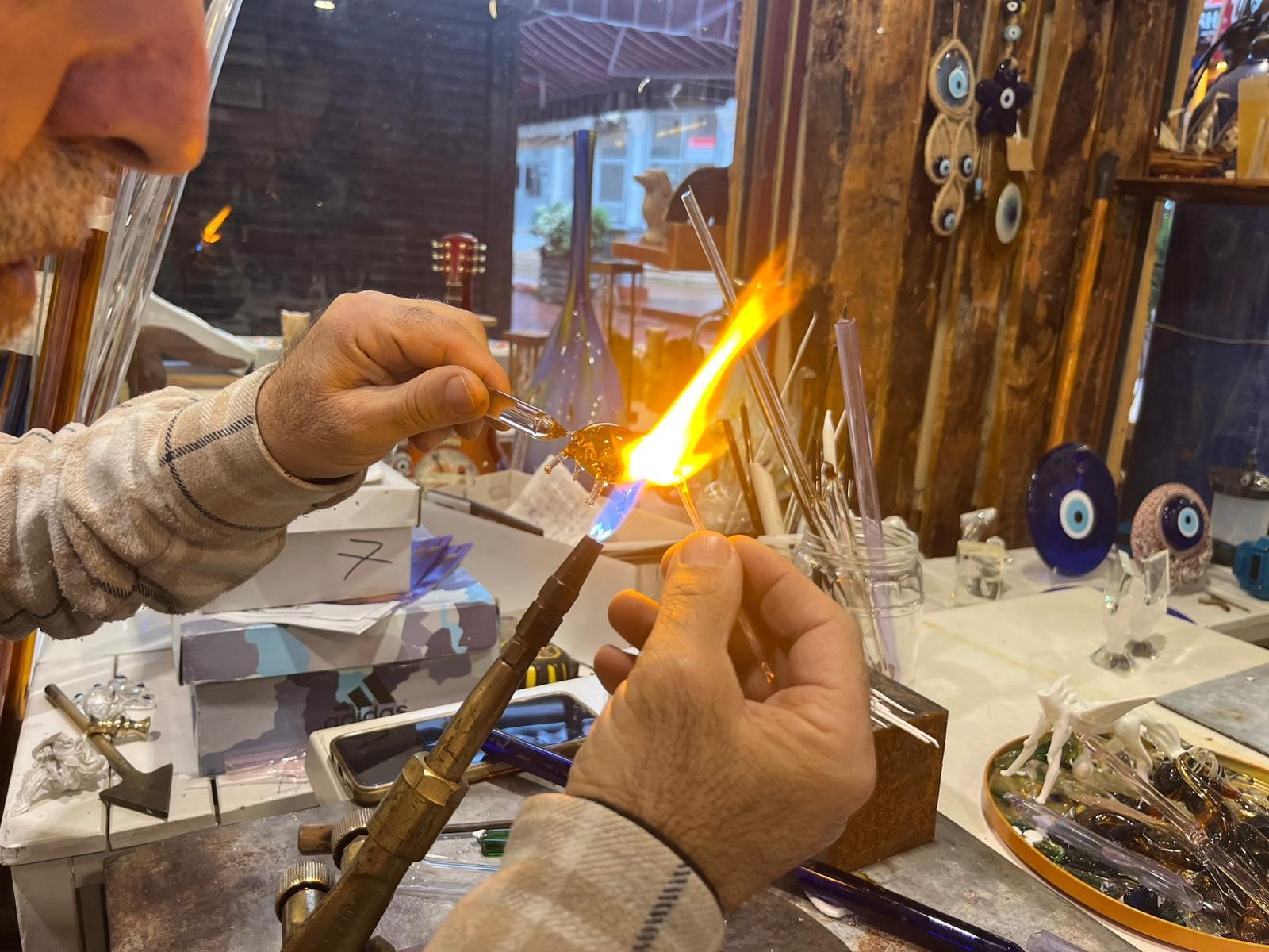 Yaşam Haber - Camı yüksek ısıda ateşe tutarak şekillendiren Paşaoğlu; hayvan figürlerinden parfüm şişelerine, kolyelerden süs eşyalarına kadar birçok özgün ürün ortaya çıkarıyor. Mesleğini büyük bir aşkla yaptığını belirten usta sanatçı, "Asıl işim sıcak cam ve üfleme cam. Ömrümün sonuna kadar tezgahın başından ayrılmak istemiyorum, mesleğimi çok seviyorum" dedi.