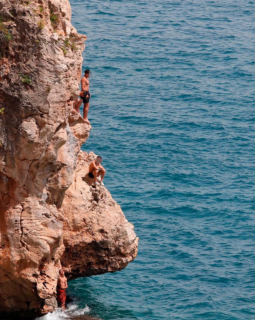 Bazı gençler denize yakın 5 metrelik kayalık alandan kendilerini boşluğa bırakırken, bir genç ise sahilde denize giren vatandaşların şaşkın bakışları arasında falezlerin yaklaşık 30 metrelik zirve noktasına çıktı. Burada bir süre bekleyen genç ardından canını hiçe sayarak kendini boşluğa bıraktı. Sahilde güneşlenen ve denize giren vatandaşların hayretler içerisindeki bakışları arasında gencin 30 metre yükseklikten kendini sulara bıraktığı anlar ise kameralara yansıdı.