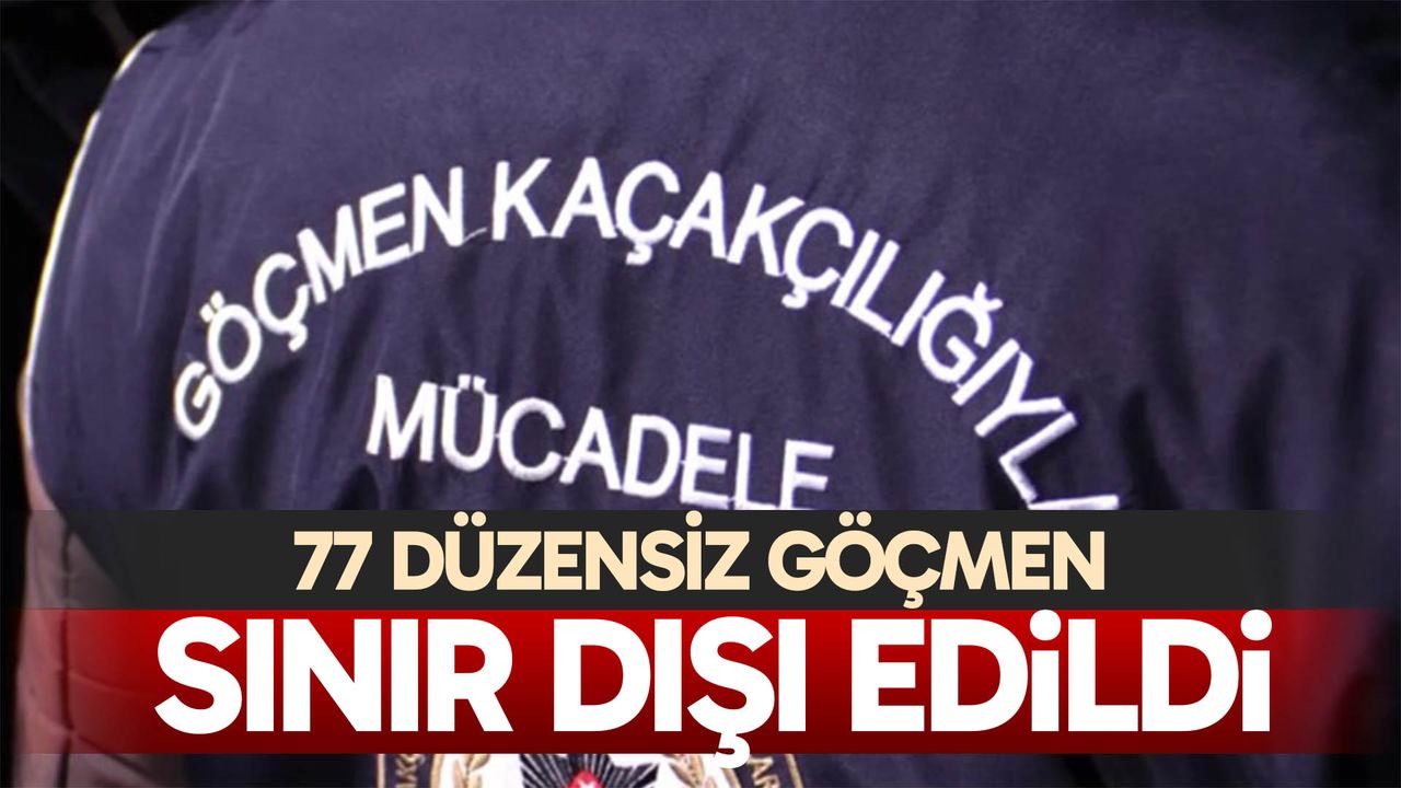 Yapılan denetimlerde 77 şahsın düzensiz göçmen olarak ilimizde bulundukları belirlendi. Gözaltına alınan 77 düzensiz göçmen haklarında yapılan işlemlerin ardından sınır dışı edildi. Diğer yandan göçmen kaçakçılığı olaylarına karıştıkları belirlenen 2 şüpheli hakkında adli işlem yapıldı.