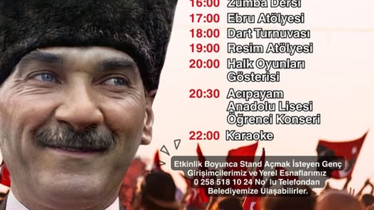 Etkinlik boyunca genç girişimciler ve yerel esnaflar, alanda kuracakları stantlarla ürünlerini sergileyebilecek. Acıpayam Belediye Başkanı Levent Yıldırım, tüm halkı bu anlamlı günde Cumhuriyet Parkı’na davet ederek, gençliğe armağan edilen bu özel bayramı hep birlikte coşkuyla kutlamaya çağırdı.