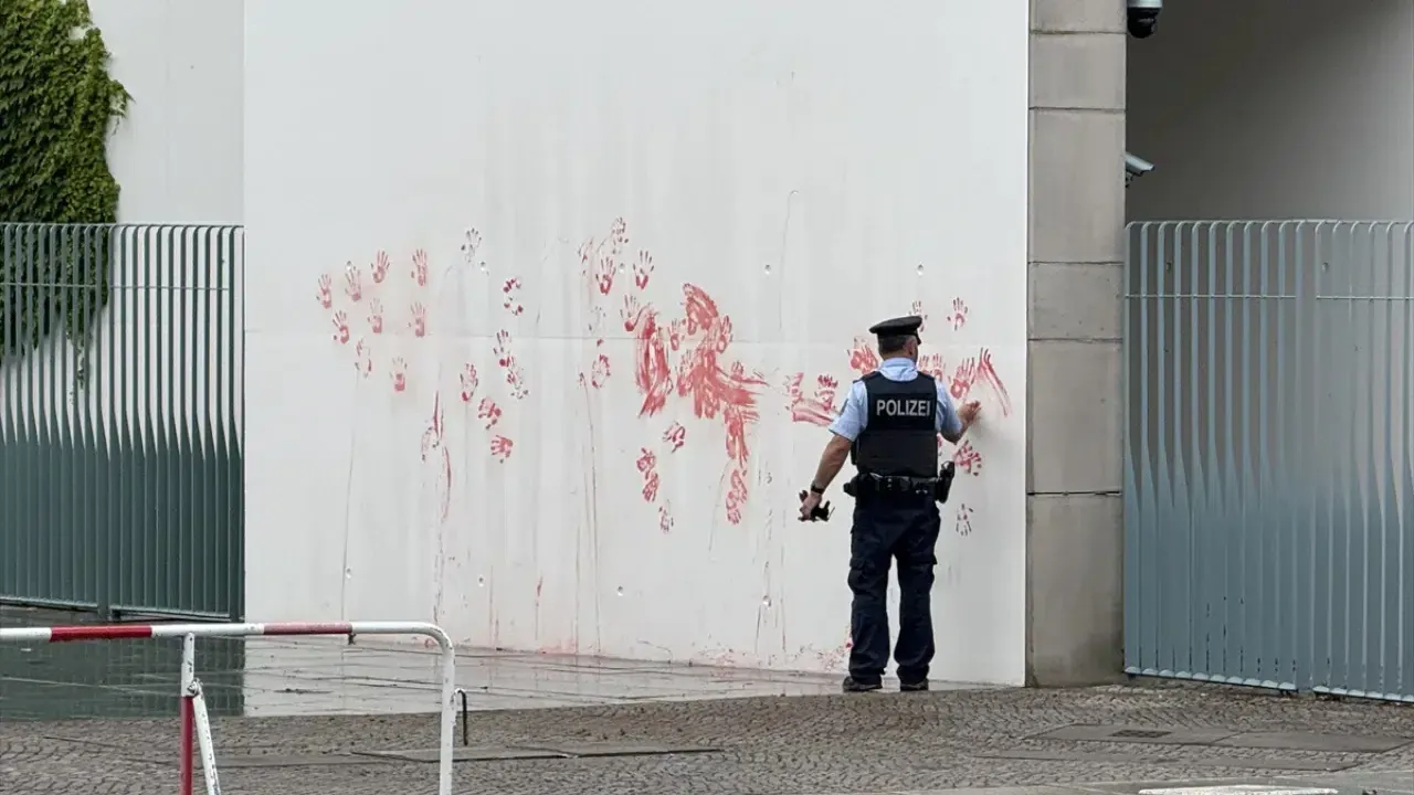 Filistin destekçisi 2 kişi, öğle saatlerinde Almanya’nın başkenti Berlin’de İsrail ve Almanya'yı protesto etti. Yakın zamanda isimlerini değiştiren Neue Generation (Yeni Nesil) adlı grubun üyesi 2 kişi, ellerini yanlarında getirdikleri kırmızı boyaya bulayarak Almanya Başbakanlığı binasının duvarına sürdü. Sosyal medya hesaplarından da eylemlerini paylaşan göstericiler, "İsrail’in 2’nci en büyük tedarikçisi Almanya, Gazze’deki acılardan doğrudan sorumludur" ifadelerini kullandı.