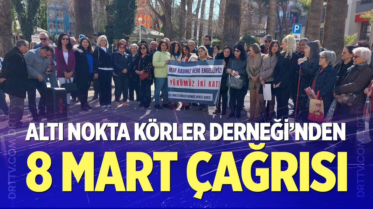 Denizli Haber - Altı Nokta Körler Derneği Denizli Şubesi Kadın Meclisi 8 Mart Dünya Kadınlar Günü dolayısıyla Gazi Mustafa Kemal Bulvarı’nda bir araya gelerek basın açıklaması gerçekleştirdi. Dernek adına açıklama yapan Zerrin Bozcayoca, kadınların yaşadığı zorluklara dikkat çekerek şu ifadelere yer verdi: “Bugün 7 Mart. 8 Mart’a saatler kala bu meydandayız. Bizler engelli kadınlar olarak bir gün önceden buradayız. Çünkü bizim mücadelemiz bir güne sığmaz. Yaşadıklarımız bir çiçeğe, bir tebriğe, birkaç güzel söze sığmayacak kadar ağırdır.
