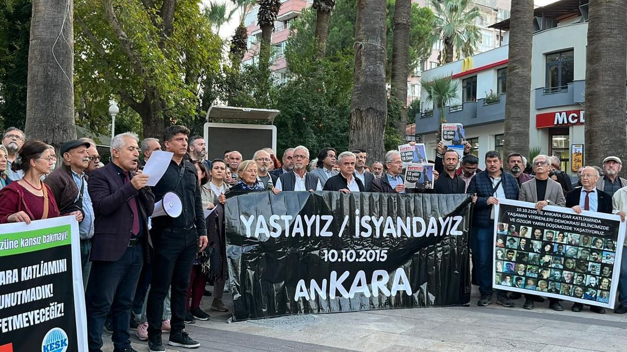 KESK dönem sözcüsü Yusuf Yurdakul basın açıklamasını okuyarak, 10 Ekim 2015’te saat 10.04’te Ankara Gar Meydanı’nda düzenlenen saldırının emek, barış ve demokrasi talebini hedef aldığını söyledi. Yurdakul, “Katliamın gerçek sorumluları hâlâ ortaya çıkarılamadı. Tek bir idari yetkili bile resmi olarak soruşturulup, yargılanmadı. Soruşturmalarda gecikmeler yaşanıyor. Firari sanıklar yargı önüne çıkarılmadı” dedi.