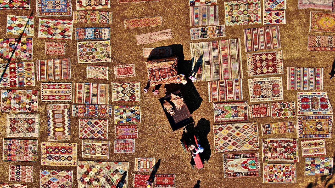 Gündem Haber- Döşemealtı'nda kışın buğday ekilen tarlalarda, bu kez mahsul değil değeri milyonları bulan el dokuması halı ve kilimler hasat edildi. Her yıl yaz aylarının gelmesi ile birlikte aralarında yüzlerce yıllık tarihi olan yurt içi ve yurt dışından getirilen binlerce halı ve kilim itina ile tamir edilmesinin ardından mikroplardan arındırılmak üzere steril havuzlara sokuluyor. Buradaki işlemlerin ardından halı ve kilimler tarlalarda güneşe serilerek renkleri soldurulup pastele dönüşmesi sağlanıyor. Serim işleminin ardından görsel bir şölen oluşturan binlerce halı güneşin altında belirli aralıklarla çevrilerek nemi ve sıcağı en iyi şekilde alarak renklerin tonlamasının sağlamlaşması sağlanıyor.