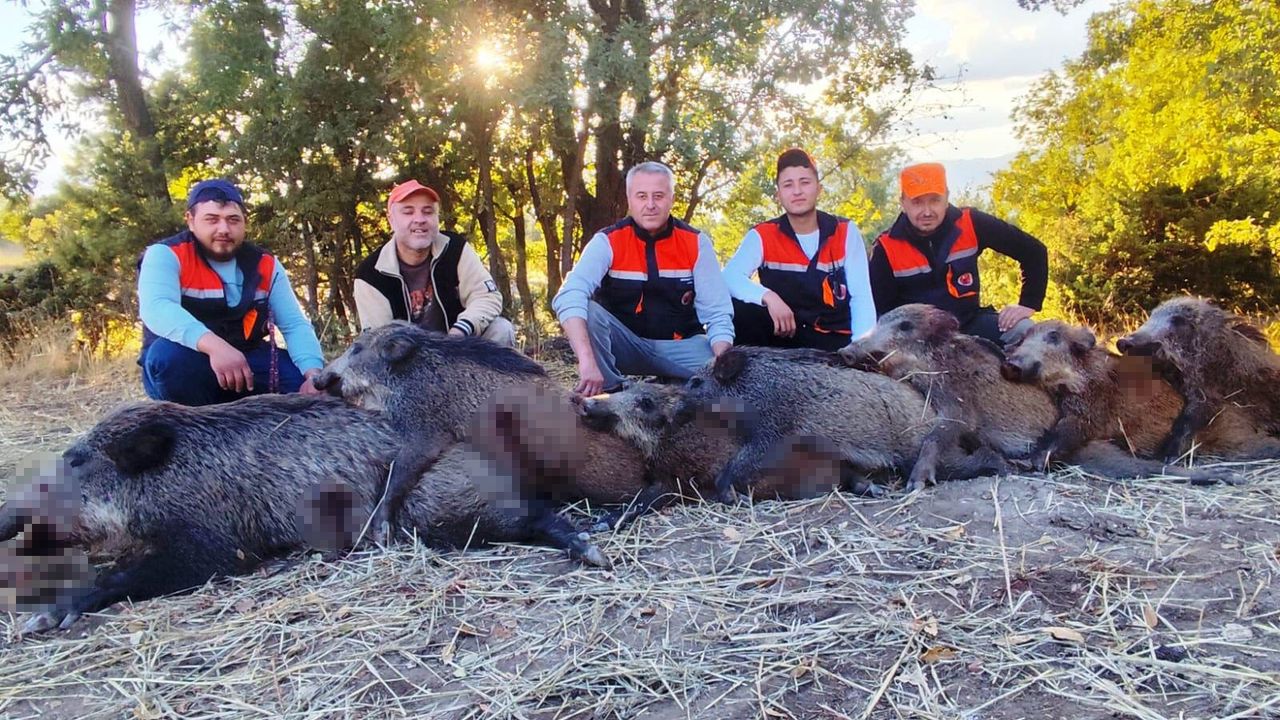 Kütahya'nın Hisarcık ilçesindeki avcılar 6 saatte 7 yaban domuz vurdu.
