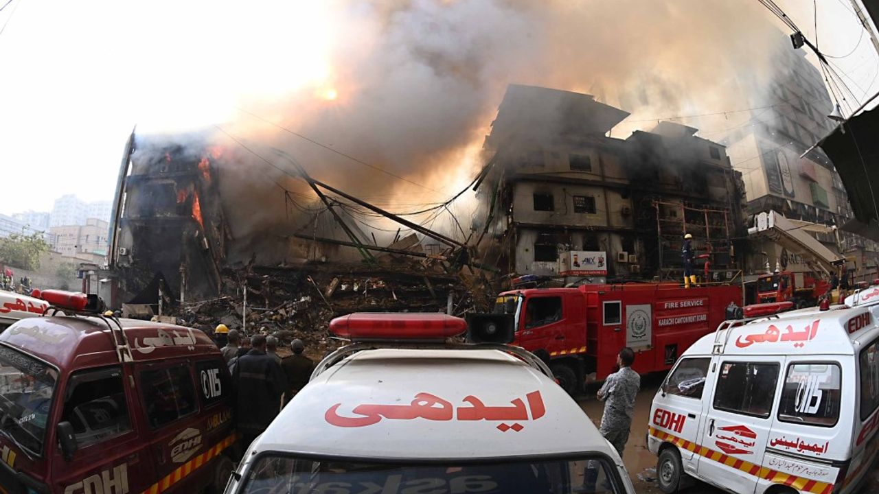 Pakistan'da cumartesi akşam saatlerinde çıkan yangın, bir çiçekçide başlamış ve 18 saatten fazla süredir söndürülememişti. Yaklaşık bin 200 mağazanın bulunduğu AVM'nin bir kısmı yangın nedeniyle çökmüş, zemin kattaki tüm dükkan ve depolar alevlere teslim olmuştu.