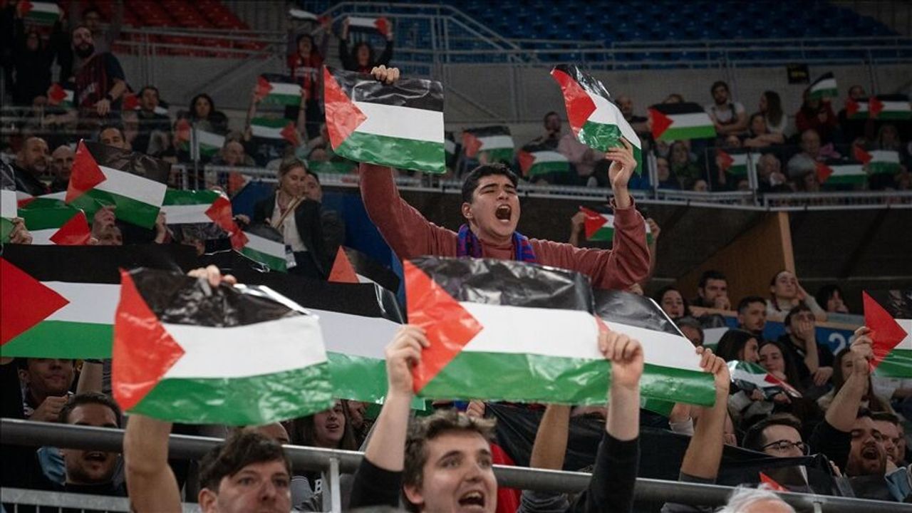Spor Haber - İsrail’in tüm spor organizasyonlarından men edilmesi yönünde küresel çapta çağrılar yapılırken, Avrupa Ligi’nde dün oynanan Hapoel Tel Aviv - Maccabi Tel Aviv basketbol karşılaşmasında 7 Ekim 2023’te hayatını kaybeden İsrail vatandaşları için saygı duruşunda bulunulması dikkati çekti.