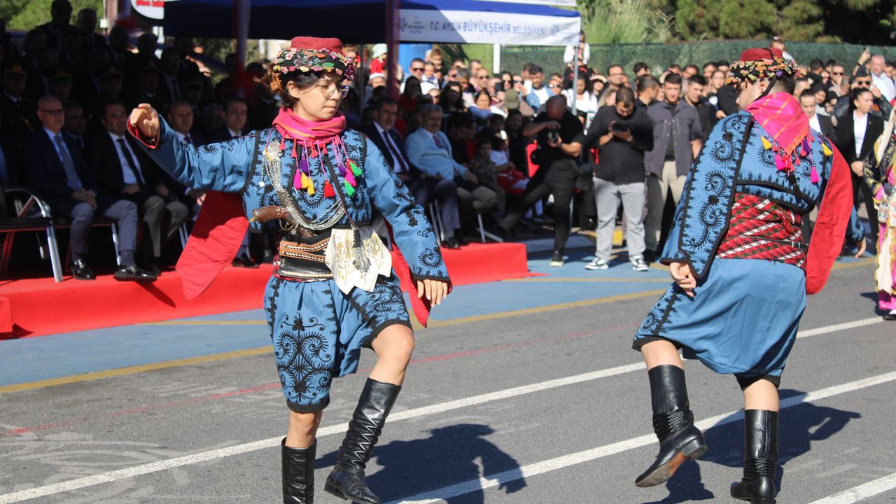Törende konuşan Aydın Valisi Yakup Canbolat; "Bu anlamlı günde hepimizi ortak bir duygu etrafında buluşturan Cumhuriyetimizin yıldönümü sadece bir bayram değil, aynı zamanda millet olarak yeniden kenetlendiğimiz, geçmişimizi şükranla yad edip, geleceğe umutla baktığımız bir gündür. Kurtuluş Savaşı’nın en zorlu şartları içinde milletimizin azim ve kararlılığıyla kazanılan zaferin ardından 29 Ekim 1923 tarihinde ilan edilen Türkiye Cumhuriyeti, tarihimizin en büyük dönüm noktalarından biridir. Egemenliğin kayıtsız şartsız millete ait olduğunun tüm dünyaya ilan edildiği gündür. Cumhuriyet sadece bir yönetim biçimi değil aynı zamanda çağdaşlaşma, kalkınma, ilerleme ve milli iradenin en güçlü ifadesi olarak bırakılmış en kıymetli mirastır. Gazi Mustafa Kemal Atatürk’ün ‘en büyük eserim’ diyerek bizlere emanet ettiği cumhuriyet, Türk milletinin karakteriyle, onuruyla ve bağımsızlık anlayışıyla bütünleşmiştir. Aydın ilimiz de tarih boyunca cumhuriyet değerlerinin yaşatılmasında ve korunmasında öncü bir rol oynamıştır. Milli Mücadele döneminde Ege’nin yiğit efeleri Yörük Ali Efe başta olmak üzere tüm kahramanlarımız vatan toprağını korumak uğruna gösterdikleri, cesaret ve fedakarlıkla bağımsızlığımızın simgesi olmuşlardır. Onların aziz hatıraları bugün de bizlere ilham ve güç vermektedir. Bugün bizlere düşen en büyük görev, atalarımızın canlarını feda ederek bizlere emanet ettiği bu cennet vatanı birlik ve beraberlik içinde daha huzurlu ve güçlü bir Türkiye olarak gelecek nesillere bırakmaktır. Bu duygu ve düşüncelerle, cumhuriyetimizin kurucusu Gazi Mustafa Kemal Atatürk olmak üzere İstiklal Harbimizin tüm kahramanlarını, aziz şehitlerimizi rahmetle, kahraman gazilerimizi minnet ve şükranla anıyorum. Cumhuriyetimizin 102. kuruluş yıldönümü kutlu olsun" diyerek Aydınlıların bayramını kutladı.