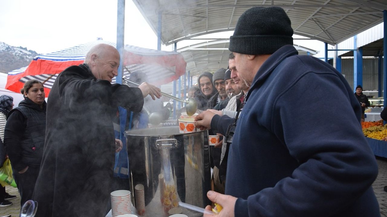 Sosyal Medya hesabından yapılan paylaşımda şu ifadelere yer verildi: "Soğuk havada pazar yerimizde hemşehrilerimiz ve esnaflarımızla bir araya gelerek çorba ikramında bulunduk. Tüm vatandaşlarımıza keyifli alışverişler, esnaflarımıza hayırlı ve bol kazançlar dileriz."
