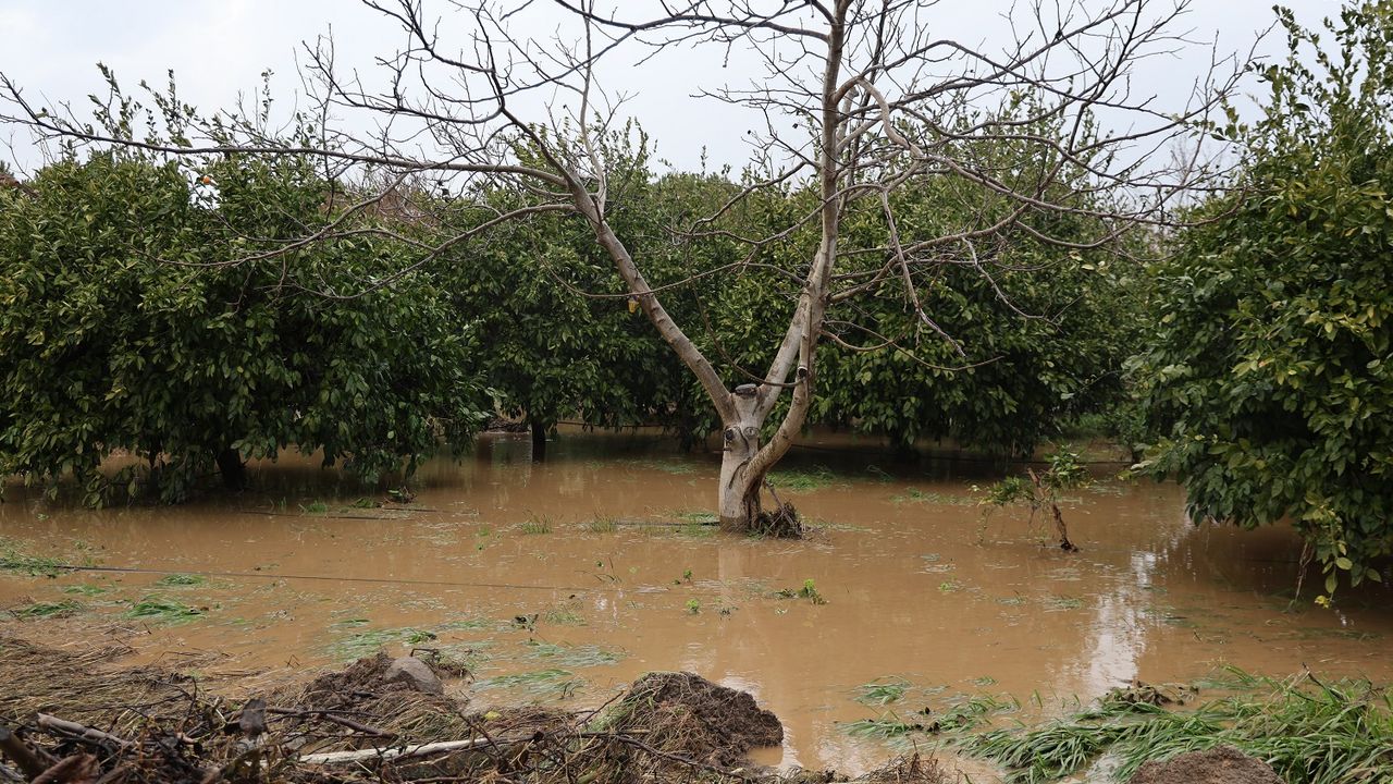 Gündem Haber - Aydın'ın Söke ve Kuşadası ilçesi başta olmak üzere batı ilçelerinde etkili olan sağanak yağış, hayatı olumsuz etkiledi. Özellikle Kuşadası ilçesine bağlı Davutlar ve Güzelçamlı mahallelerinde meydana gelen taşkınlar sebebiyle bazı arabalar sel sularına kapılırken, birçok noktada da sokak ve caddeler trafiğe kapandı. Yaşanan taşkınlar sebebiyle Deniz Caddesi üzerinde bulunan birçok meyve bahçesi de göle döndü. Bahçeleri koruyan çitler, sel sularıyla yerinden sökülürken, narenciye ve şeftali ağaçları da sular altında kaldı.