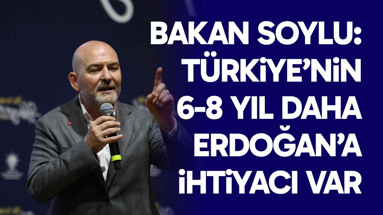 Cumhurbaşkanı Recep Tayyip Erdoğan’ın duruşunun bu millete özgüven kazandırdığına vurgu yapan Soylu, "’Siz yapamazsınız’ diyenlere karşı, ’biz yapabiliriz, biz gerçekleştirebiliriz ve biz başarabiliriz’ diye hepimize anlattı. Şimdi önümüzde bir fırsat var. Bu fırsatı hep beraber yönetmek, hep beraber yarınlara büyük adımlar atmak zorundayız. Türkiye’nin Recep Tayyip Erdoğan’a 6-8 yıl daha ihtiyacı var. Dünyada üç tip lider vardır. Üst kat lider, orta kat lider ve alt kat lider. Yüz yıldan beri ilk kez biz üst kat liderle karşı karşıyayız. Eli yolsuzluklara bulaşmış, hiçbir şey yapmamış insanları parlatacaklar, 25 yıldır çeyrek asırdır Türkiye’yi bütün özlemleriyle buluşturan Tayyip Erdoğan’ı oyun dışı bırakacaklar. Yok öyle bir yağma, bu ülkenin bir evladı olarak bunu söylüyorum" şeklinde konuştu.