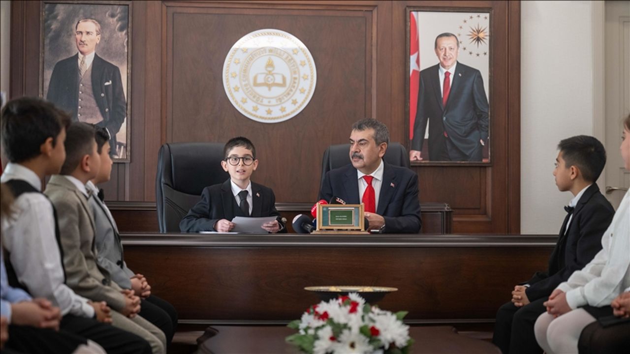 Bakan Tekin, TBMM'nin açılışının 105. yıl dönümü ile 23 Nisan Ulusal Egemenlik ve Çocuk Bayramı dolayısıyla çeşitli okullardan gelen öğrencileri kabul etti.