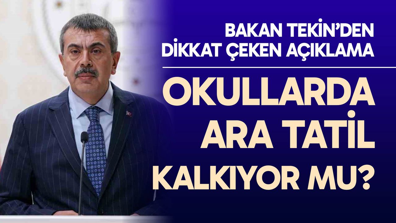MEB'den ara tatil için 'kaldırılabilir' sinyali geldi. İki günlük Mardin ziyaretini takip eden gazetecilere açıklamalarda bulunan Millî Eğitim Bakanı Yusuf Tekin, 2019 yılından bu yana uygulanan ve eğitim dönemi içerisinde iki defa birer hafta şeklinde yapılan ara tatilin kaldırılacağı mesajını verdi. Liselerdeki eğitim süresinin şimdilik beklemede olduğunu kaydeden Tekin, adrese dayalı kayıt sistemini delen velilerle ilgili de yeni tedbirler alacaklarını söyledi.