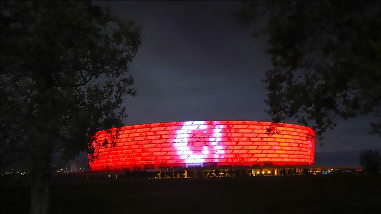 Dünya Haber - Gece boyunca Türk bayrağının ay yıldızlı silüeti, Haydar Aliyev Merkezi'nin kıvrımlı dış cephesine ve Olimpiyat Stadyumu'nun LED aydınlatmalarına yansıtıldı.