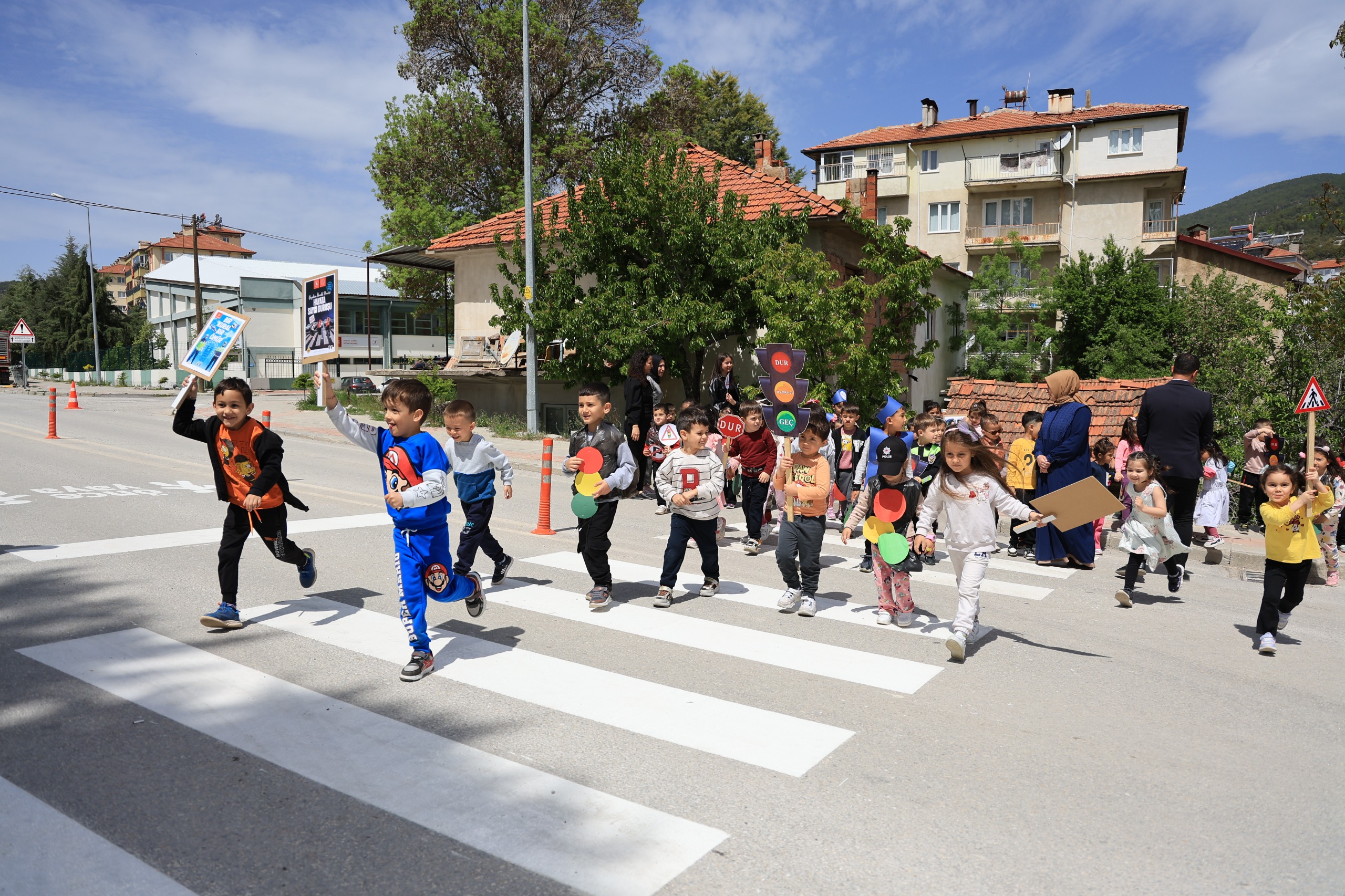 Trafik Jandarma ve Trafik Polisi ekiplerinin eşliğinde gerçekleştirilen etkinlikte; trafik işaretleri, trafik lambaları ve yaya geçidi gibi temel trafik unsurları minik öğrencilere tanıtıldı. Özellikle yaya geçidinin önemi vurgulanarak, çocukların trafik güvenliği konusunda bilinçlenmeleri sağlandı.