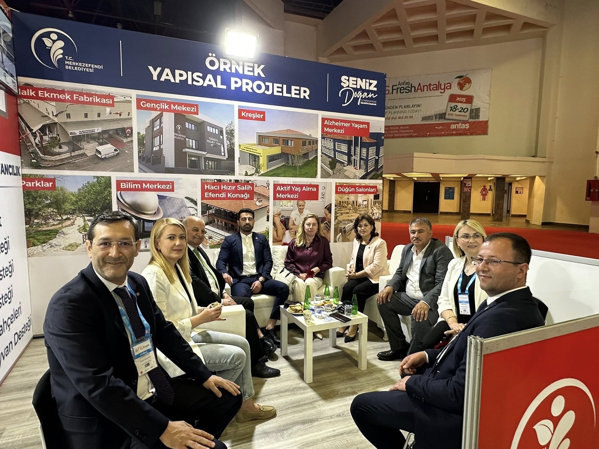 Beyağaç Belediye Başkanı Sezayi Pütün, Antalya’da düzenlenen Akdeniz Belediyeler Birliği Antalya City Expo Fuarına ziyarette bulundu. Fuarda Antalya Büyükşehir Belediye Başkanı Muhittin Böcek ve diğer belediye başkanlarıyla bir araya gelen Başkan Pütün şehircilik ve teknolojik dönüşüm konularında fikir alışverişinde bulundular. Belediye Başkanı Sezayi Pütün, fuarda stant kuran Çameli ve Merkezefendi Belediyelerinin stantlarını gezdi.