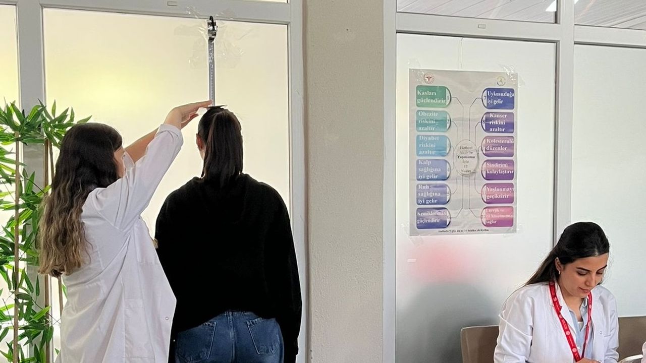 Katılımcıların boy ve kilo ölçümleri yapılarak beden kitle indeksleri (BKİ) hesaplandı. Elde edilen verilere göre bireylere gerekli yönlendirmelerde bulunuldu.
