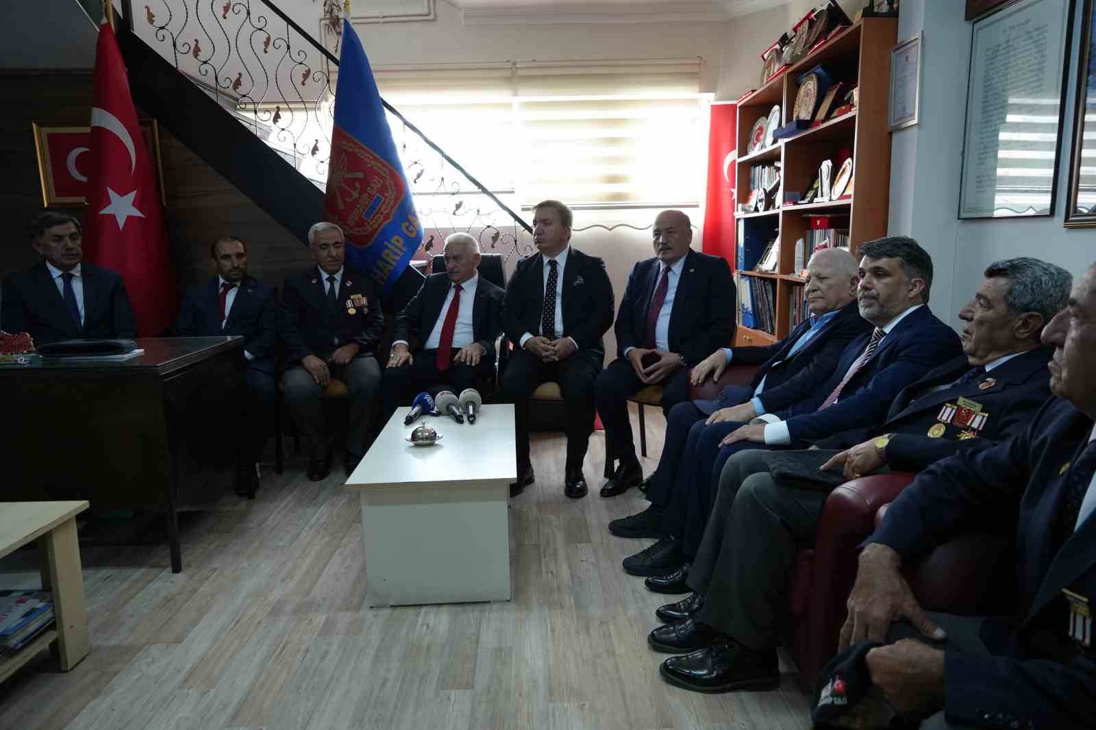 Binali Yıldırım, Buğday Meydanı’ndaki ziyaretinin ardından Muharip Gaziler Derneği’ne ziyarette bulundu. Burada gaziler ile görüşen Yıldırım, gazilerin vatan için verdikleri mücadeleyi asla unutmadıklarını belirterek, "Gaziler gelecek için bir timsaldir, bir örnektir. Siz en zor zamanda en zor görevi ifa ettiniz. Türkiye dünden daha güçlüdür yarın bugünden daha da güçlü olacaktır. Türkiye sadece sınırlarımız içinde değil bölgemizde, dünyada da sözü dinlenen bir ülke halindedir. Cumhurbaşkanımızın liderliğinde son 20 yılda ülkemiz hem kalkınma yolunda hem uluslararası saygınlık yolunda büyük mesafeler kat etti. Bundan sonra da kat etmeye devam edeceğiz. 21. yüzyıl Türklerin yüzyılı olacak bunun ayak seslerini görüyoruz, işitiyoruz" ifadelerine yer verdi.
