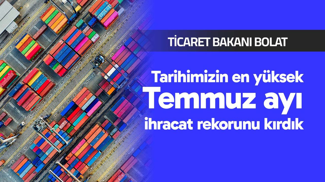 Bakan Bolat, "Tarihimizin en yüksek aylık mal ihracat rekorunu temmuzda kırdık. Dolayısıyla tarihimizin en yüksek temmuz ayı ihracat rekorunu kırdık." ifadesini kullandı.
