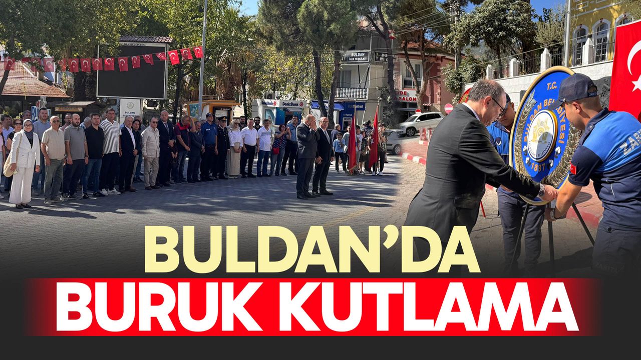 İlçe meydanında düzenlenen kutlama programı Buldan Kaymakamı Turan Erdoğan, Buldan Belediye Başkanı Mehmet Ali Orpak, kurum ve daire müdürleri katıldı. Atatürk anıtına çelenk sunumu ile başlayan kutlama programı saygı duruşu ve İstiklal Marşının okunmasıyla devam etti.