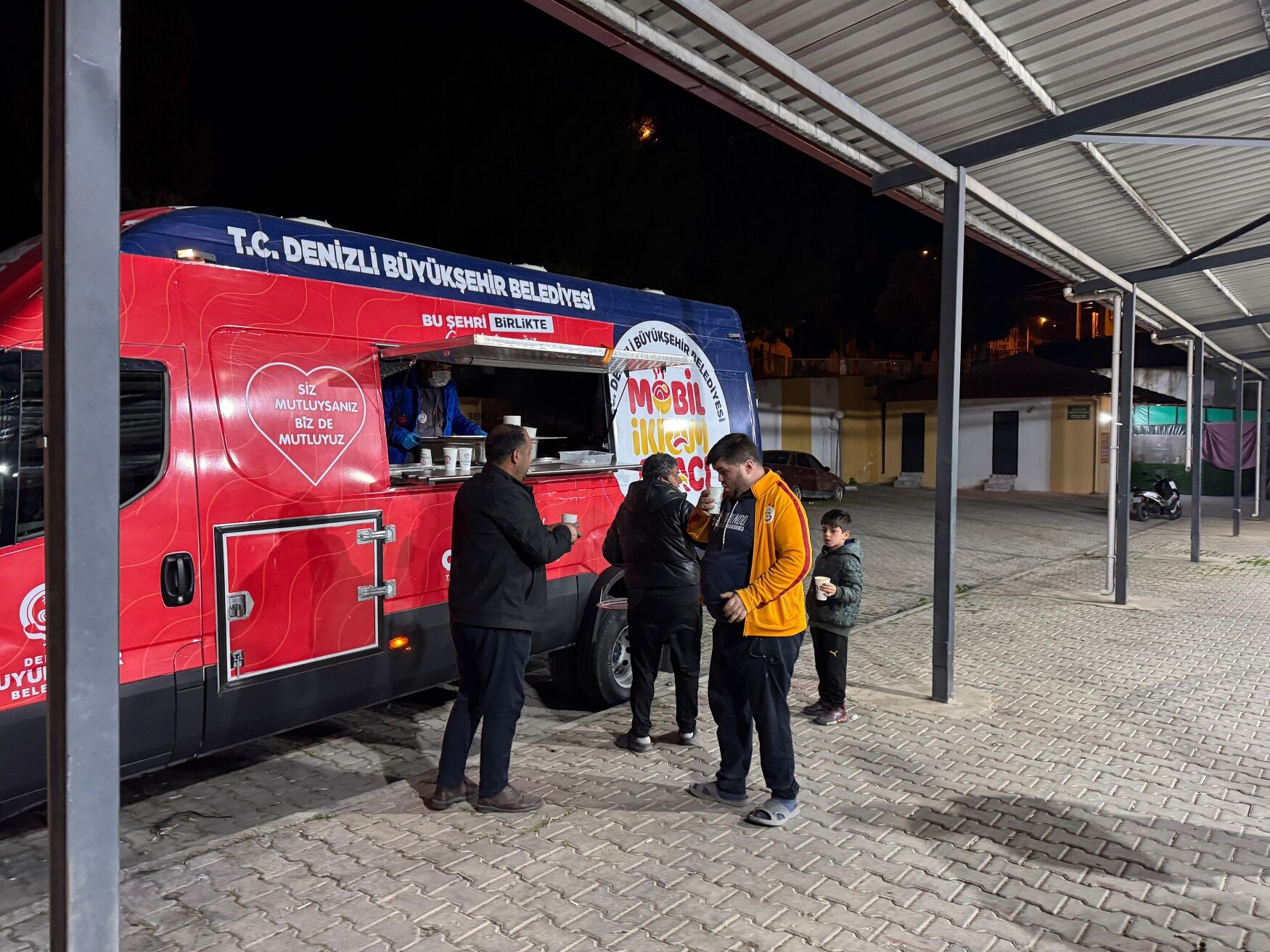 Denizli Haber - Denizli Büyükşehir Belediyesi Sosyal Hizmetler Dairesi Başkanlığı bünyesinde hizmet veren mobil ikram araçları Buldan ilçesinde meydana gelen 5.1 büyüklüğündeki şiddetli sarsıntının ardından vatandaşları yalnız bırakmadı. Depremin en şiddetli yaşandığı Buldan ilçesinin Yenicekent Mahallesi’ne konuşlanan ikram araçları burada evlerine giremeyen vatandaşların ihtiyaçlarını karşıladı. Mobil araçlar gece boyunca meydana gelen onlarca artçı depremden dolayı geceyi dışarıda geçirmek zorunda kalan vatandaşlara çorba, pilav ve su ikramında bulundu. Ramazan ayı dolayısıyla sahur vaktinde de mesaisine ara vermeyen ekipler sabahın erken saatlerine kadar hizmet verdi. Zor anlarında Büyükşehir Belediyesini yanlarında gören bölge halkı hizmetten dolayı ekiplere teşekkür etti.