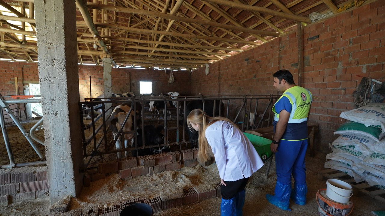 Denizli Haber - Denizli Büyükşehir Belediyesi, kırsalda hayvancılığın gelişimini desteklemek amacıyla Çivril ilçesinde başlatılan ve diğer ilçelerde de devam edecek olan büyükbaş hayvan üreticilerine veterinerlik danışmanlık hizmetini hayata geçirdi. Büyükşehir Belediyesine bağlı uzman veteriner hekimler, üreticileri düzenli olarak ziyaret ederek hayvanların sağlık kontrollerini yapıyor, hastalıkların önlenmesi için aşılama ve koruyucu tedbirler konusunda rehberlik ediyor. Program kapsamında yetiştiricilere doğru bakım, beslenme ve hijyen uygulamaları konusunda eğitimler veriliyor. Bu sayede hem hayvanların refahı hem de elde edilen ürünlerin kalitesi artırılıyor.