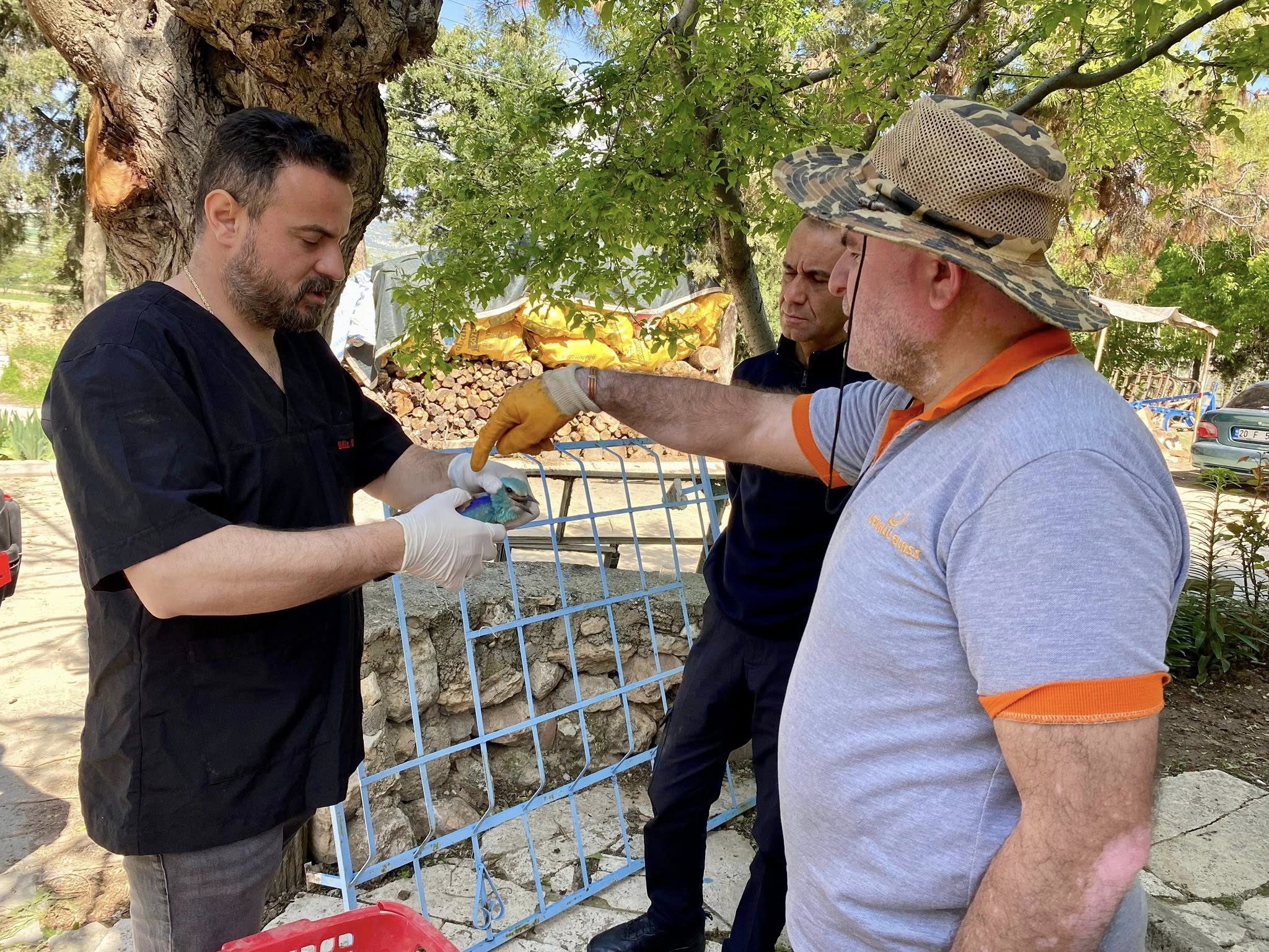 Veteriner Hekim Zeybek, kuşu kontrol ettikten sonra, yetkililer tarafından güvenli bir şekilde teslim edilmek üzere bölgeden alındı.