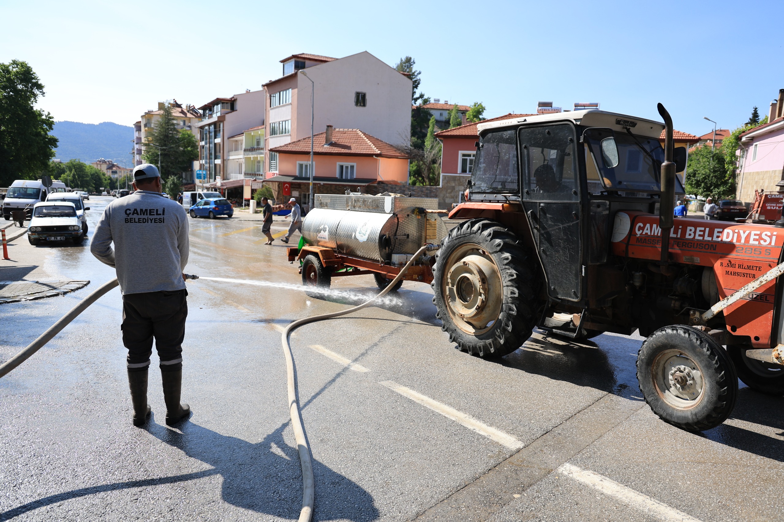Denizli Haber - Çameli Belediyesi Fen İşleri Müdürlüğü ekipleri, yaklaşan Kurban Bayramı öncesinde ilçe genelinde kapsamlı temizlik çalışmalarına başladı. Cadde ve sokaklarda yapılan detaylı yıkama çalışmalarıyla, vatandaşların bayramı daha temiz, sağlıklı ve hijyenik bir ortamda karşılaması hedefleniyor. Çameli Belediyesi bayram hazırlıklarına başladı. Başkan Cengiz Arslan, tüm ekiplerle seferber olarak ilçeyi bayrama hazırladıklarını söyledi. Başkan Arslan yaptığı açıklamada,” Çameli ilçemiz Denizli’nin en güzide ilçelerindendir. Bayramlar ise bizim manevi birlikteliklerimizim had safhaya ulaştığı önemli zaman dilimleridir. Halkımızın daha temiz daha sağlıklı ortamda bayramlarını yaşayabilmeleri için ilçemizi tertemiz ediyoruz” dedi.