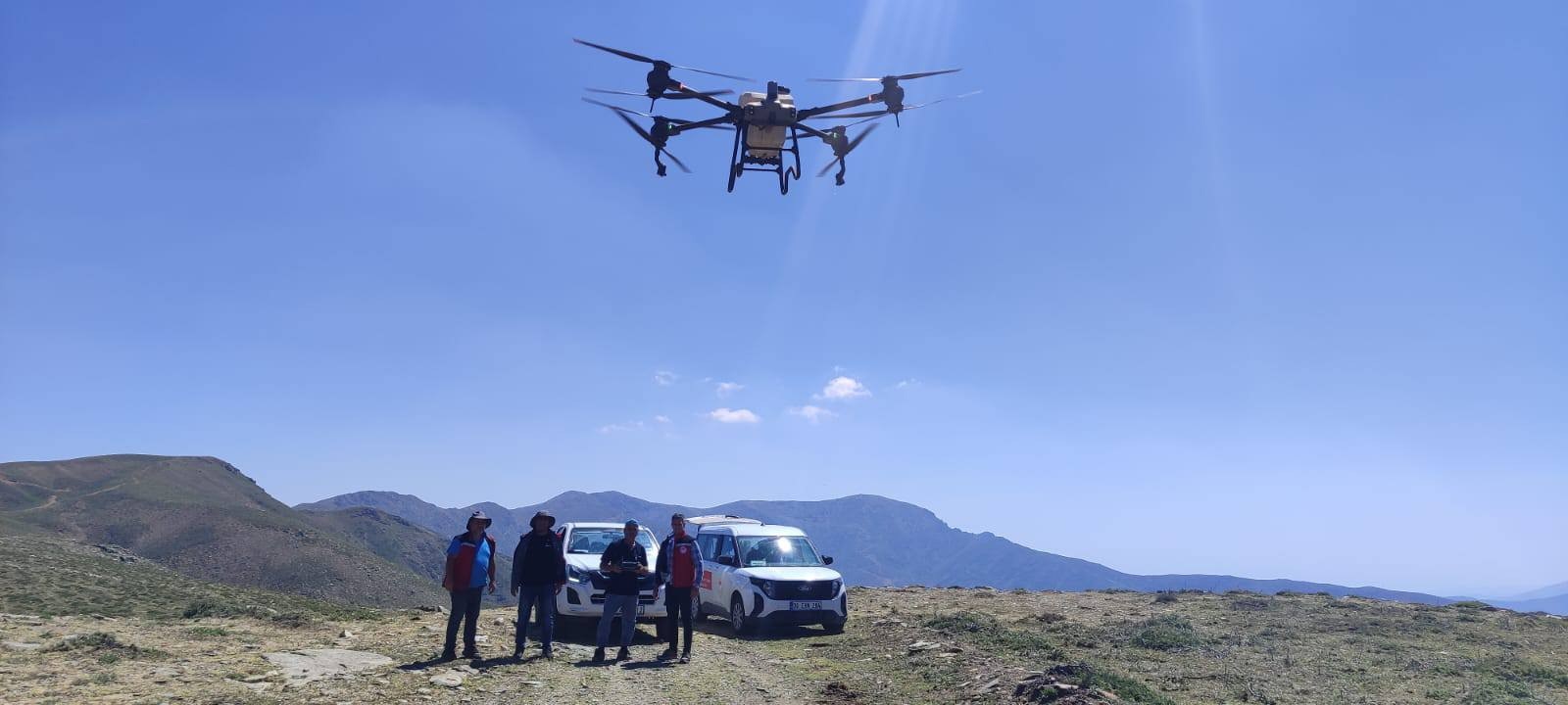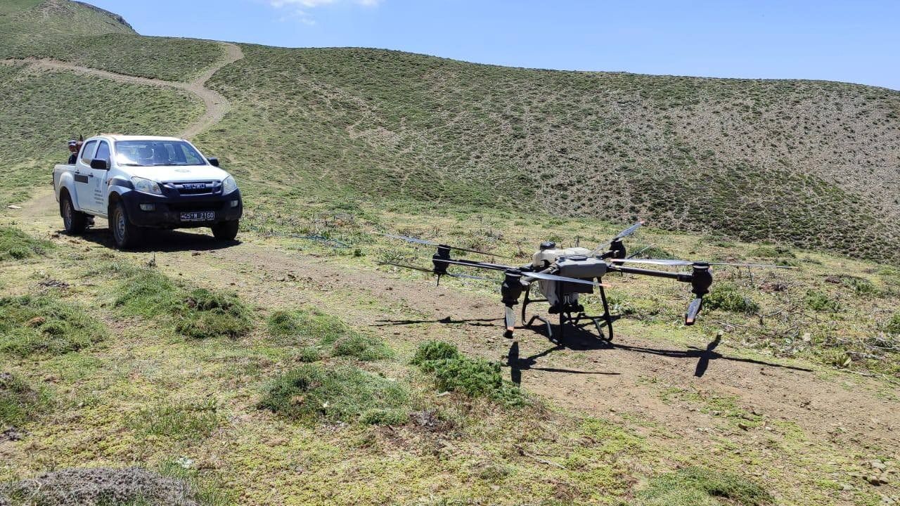 Gündem Haber - Salihli İlçe Tarım ve Orman Müdürlüğü ile Manisa Büyükşehir Belediyesi iş birliğinde Salihli'ye bağlı Çelikli, Burhan, Başlıoğlu, Şirinyer, Çamurhamamı, Karaağaç gibi yaylalarda ilaçlama çalışması gerçekleştirildi. Sıcak havaların etkisiyle meralarda çekirge yumurta bırakma alanlarının (garsiyat) bulunması sebebiyle harekete geçen ekipler, Bozdağların zirvesinde dron ile ilaçlama yaptı.
