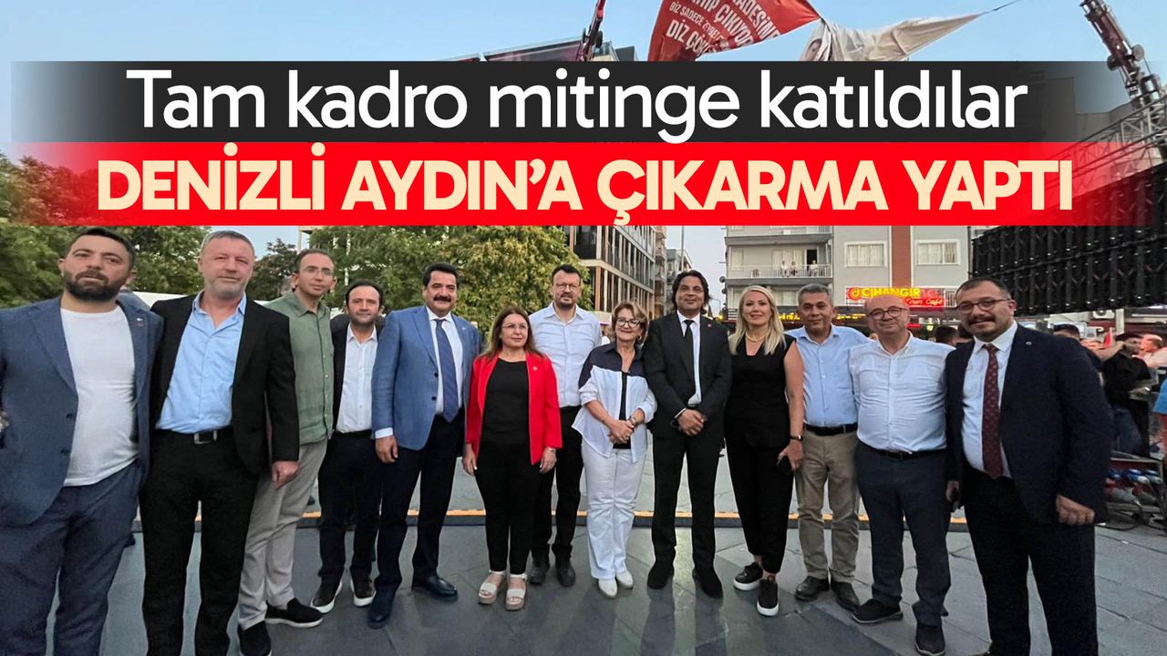 Aydın’da gerçekleştirilen mitinge Denizli’den de yoğun katılım oldu. CHP Denizli İl Başkanı Ali Osman Horzum, CHP Denizli Milletvekilleri Şeref Arpacı ile Gülizar Biçer Karaca, Denizli Büyükşehir Belediye Başkanı Bülent Nuri Çavuşoğlu, Pamukkale Belediye Başkanı Ali Rıza Ertemur, Merkezefendi Belediye Başkanı Şeniz Doğan, ilçe belediye başkanları, ilçe başkanları, CHP il ve ilçe yönetimleri ve çok sayıda partili Aydın’a giderek mitingdeki yerini aldı.
