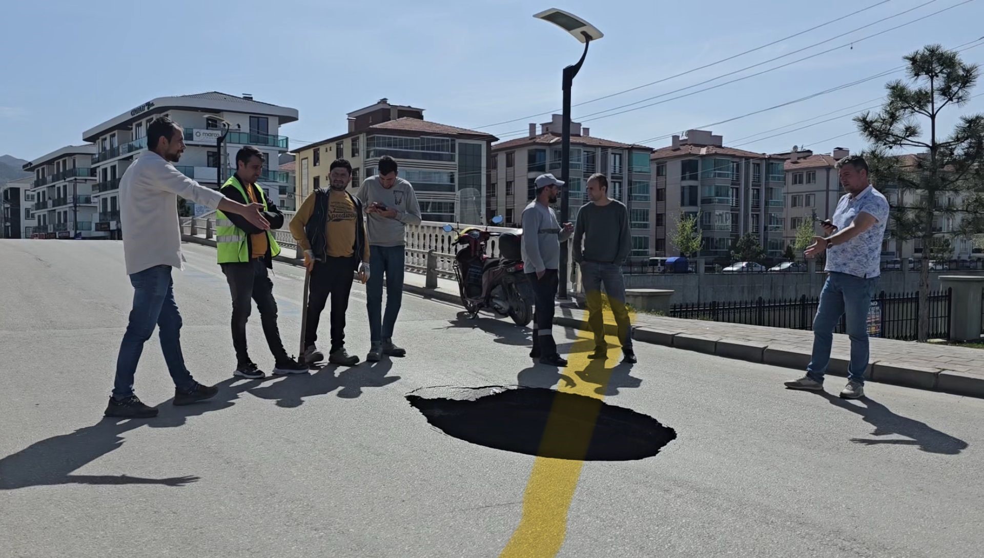Olay, Selçuklu Mahallesi Fatma Zehra Caddesi'nde meydana geldi. Kara yolunun kavşağa yakın kısmındaki asfalt yol bilinmeyen bir sebepten dolayı çöktü. Yolda yaklaşık 3 metre derinliğinde ve 2 metre genişliğinde bir çukur oluştu.