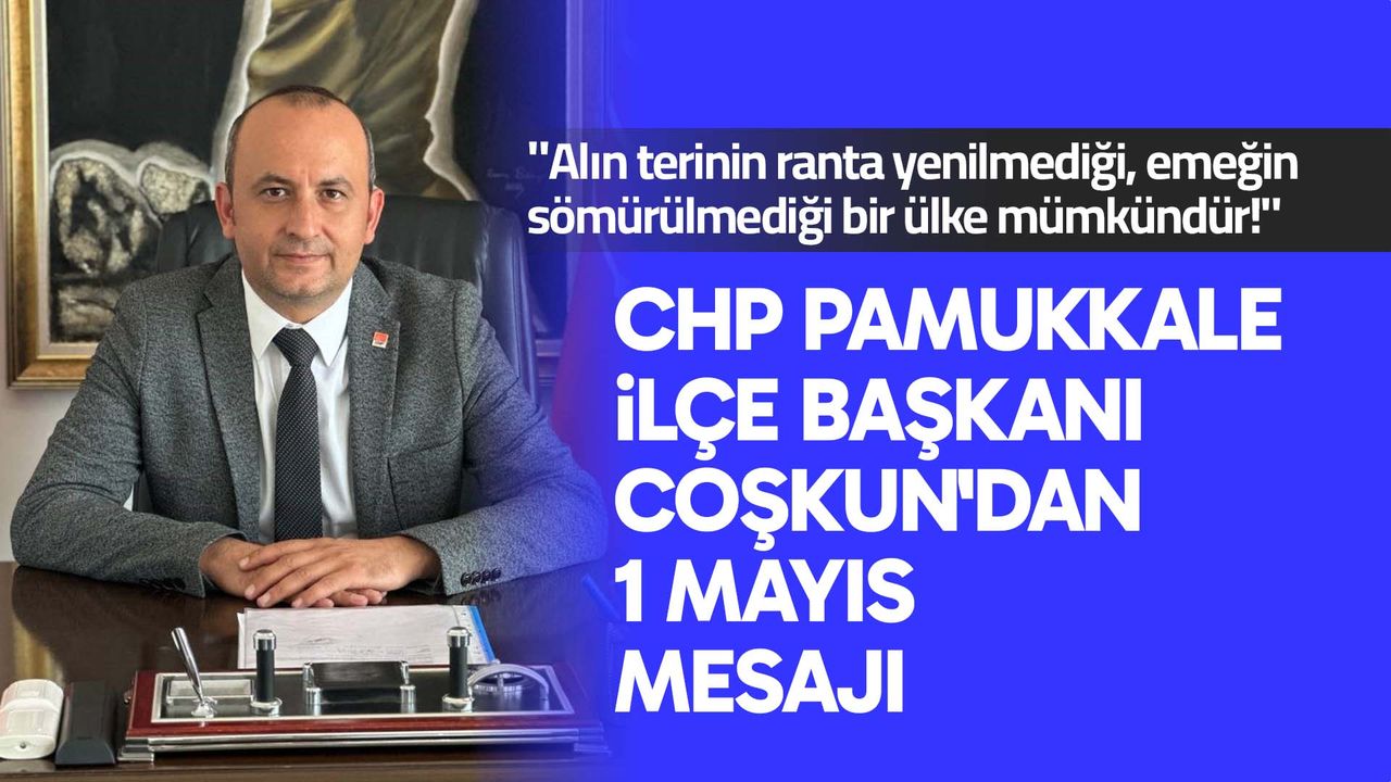 CHP Pamukkale İlçe Başkanı Uğur Coşkun, 1 Mayıs Emek ve Dayanışma Günü dolayısıyla bir mesaj yayımladı. İlçe Başkanı Coşkun mesajında, "Biz bu toprakların yoksulluğa, işsizliğe, güvencesizliğe mecbur olmadığını biliyoruz. Bu ülke; taşeron cenderesini, asgari ücretle sefalet dayatmasını, sendikasızlaştırmayı, iş cinayetlerini hak etmiyor” diyerek sendikal sorunları ve iş kazalarına vurgu yaptı.