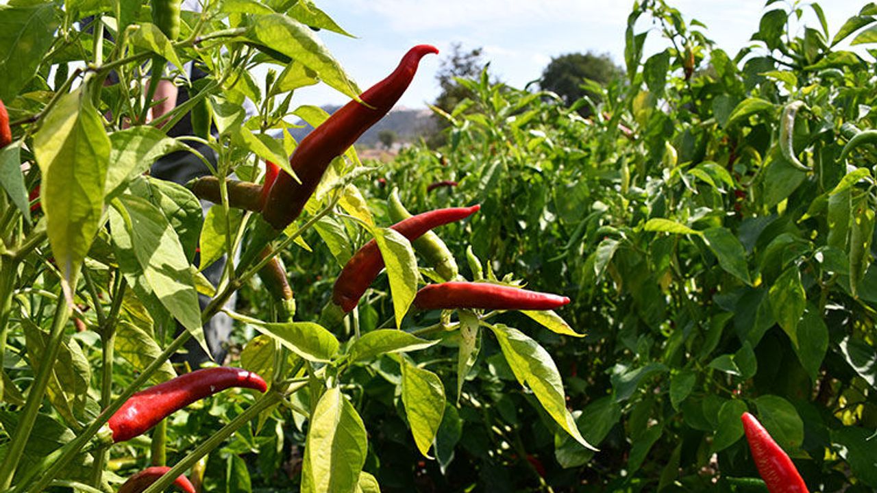 2023'te 260, geçen sene 200 dekar alanda yetiştirilen biberin ekim alanı, bu sene iklim değişikliğine bağlı kuraklık dolayısıyla 100 dekara geriledi.