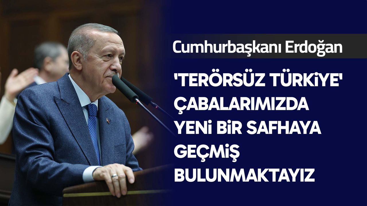Bölücü örgütün "kendini fesih ve silahları teslim" kararı aldığını açıklamasıyla "terörsüz Türkiye" çabalarında yeni bir safhaya geçildiğini aktaran Erdoğan, "Bu safha; birliğimizi, beraberliğimizi, kardeşliğimizi, dayanışmamızı, aynı ortak geleceğe doğru yürüyüşümüzü güçlendirme safhasıdır. Bu safha; 86 milyonun arasına örülen terör duvarını kalıcı olarak ortadan kaldırma safhasıdır. Bu safha; demokrasimizin serpilmesine ket vuran büyük bir engelden kurtulma safhasıdır" dedi.