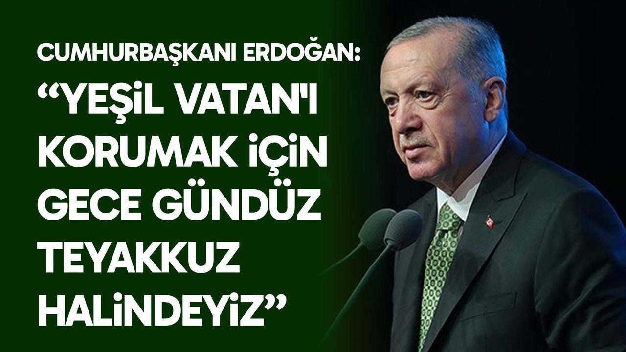 "Yeşil Vatan'ımızı korumak için halihazırda 27 uçak, 105 helikopter, 6 bine yakın kara aracı, 25 bin kahraman orman çalışanımızla, 132 bin gönüllümüzle birlikte gece gündüz teyakkuz halindeyiz. Tarım ve Orman Bakanlığımız başta olmak üzere ilgili tüm kurumlarımız, AFAD'ın koordinasyonunda çalışmalarını aralıksız şekilde, büyük bir hassasiyetle, özveriyle ve fedakarlıkla sürdürmektedir." ifadelerine yer veren Erdoğan, şunları kaydetti: "Yaz mevsiminin başından bu yana ülkemizde çıkan 3 bin 62 yangını tamamen söndürdük. Yeşil Vatan'ımızın farklı bölgelerinde devam eden ve en kısa sürede hayırlı haberler almayı dilediğimiz yangın söndürme çalışmalarında yüreğini ortaya koyan, canla başla görev yapan kahramanlarımıza Allah'tan muvaffakiyetler diliyor, emekleri için her birine ayrı ayrı şükranlarımı ifade ediyorum. Yangınlarla mücadelede şehit olan tüm kardeşlerime bir kez daha Allah'tan rahmet niyaz ediyorum. Ruhları şad olsun."