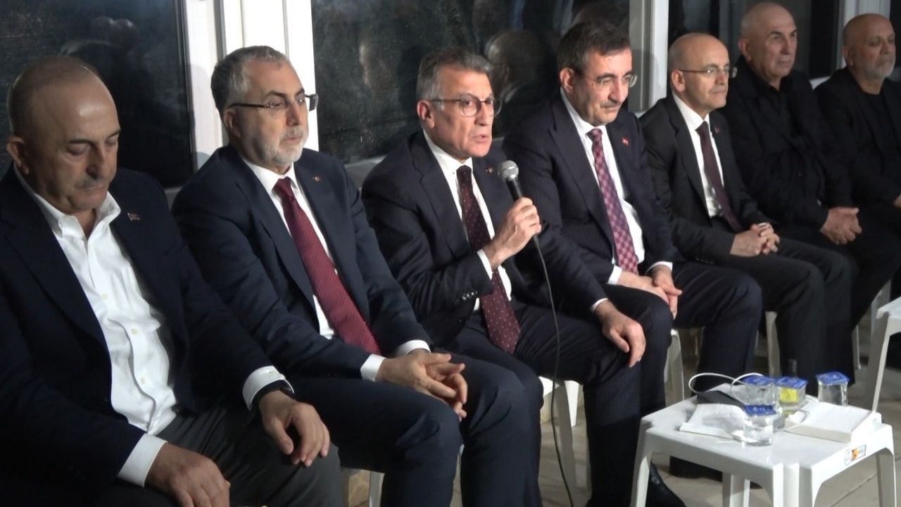 Cumhurbaşkanı Yardımcısı Yılmaz'a Çalışma ve Sosyal Güvenlik Bakanı Vedat Işıkhan, Hazine ve Maliye Bakanı Mehmet Şimşek, AK Parti Grup Başkanı Abdullah Güler eşlik etti.