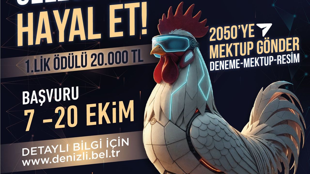 Denizli Haber - Denizli Büyükşehir Belediyesi, Cumhuriyet’in 102. yılı kutlamaları kapsamında anlamlı bir etkinliğine imza atıyor. “2050’ye Mektup: Geleceğin Denizli’sini Hayal Et” adlı yarışma ile katılımcılar, 2050 yılının Denizli’sini hayal edip resim, deneme veya mektup türünde eserlerle anlatacak. Yarışmanın amacı, çocuklardan yetişkinlere kadar her yaştan bireyin geleceğe dair umutlarını, vizyonlarını ve fikirlerini paylaşmalarını sağlamak. Yarışma kapsamında katılımcılardan; Denizli’nin kültürel, sosyal, çevresel ve teknolojik gelişmelerine dair düşlerini aktarmaları, böylece kentin ortak geleceğine ilham verecek bir hafıza oluşturmaları bekleniyor.