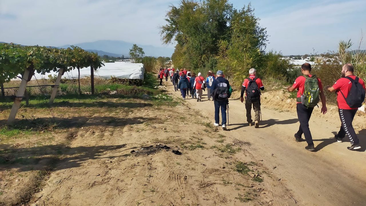 Kahvaltının ardından Baharlar Köyü'nün doğu sınırını oluşturan Derbent Boğazı'na giden grup, koruma altına alınmış 3 bin yıllık Tarım Terasları'nı gezdi. Ardından üzüm bağları arasında yürüyüş yapan dağcılar, güzergah üzerindeki 1000 yıllık Pırnal ağacının önünde fotoğraf çektirdi.