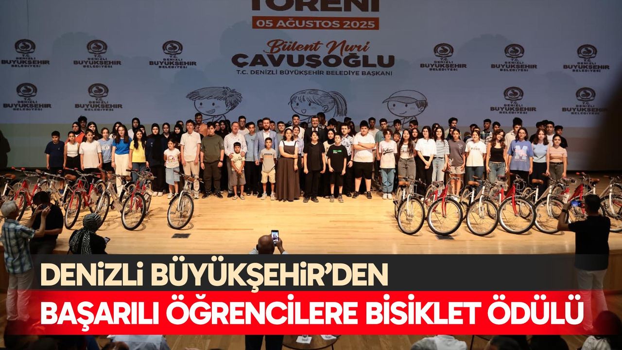 Denizli Haber - Denizli Büyükşehir Belediyesi, eğitimde başarıyı ödüllendirmeye devam ediyor. Kent genelindeki ortaokullarda eğitimini başarıyla tamamlayarak okullarında ilk üçe giren öğrencilere bisiklet hediye edildi. Denizli Büyükşehir Belediyesi Kongre ve Kültür Merkezi’nde coşkulu bir katılımla gerçekleştirilen bisiklet dağıtım törenine Denizli Büyükşehir Belediye Başkanı Bülent Nuri Çavuşoğlu, İl Milli Eğitim Müdür Yardımcısı Hüseyin Başgün, Tavas Belediye Başkanı Kadir Tatık, Genel Sekreter Yardımcısı Onur Yılmaz, Pamukkale Üniversitesi Spor Bilimleri Fakültesi Dekanı Prof. Dr. Bülent Ağbuğa,Büyükşehir Belediyesi Gençlik ve Spor Hizmetleri Daire Başkanı Ayşe Sarıkaya, öğrenciler, aileleri ve çok sayıda davetli katıldı.