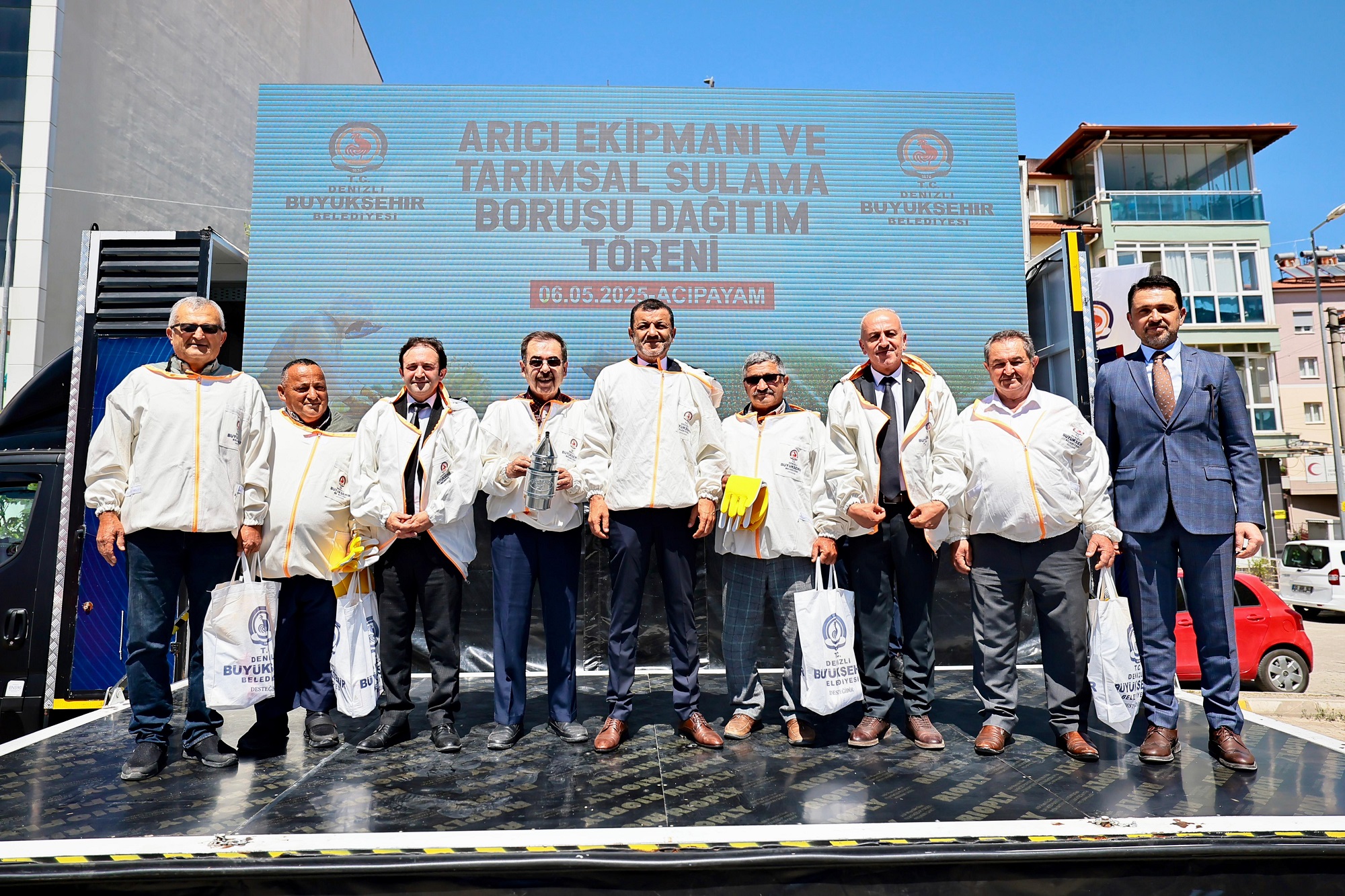 Belediyecilik hizmetlerinin yanı sıra kırsal kalkınmaya da büyük önem veren Denizli Büyükşehir Belediyesi, Başkan Çavuşoğlu ile birlikte pek çok alanda üreticinin ihtiyaç ve talebini yerine getirmeye devam ediyor. Bu kapsamda Acıpayam ilçesinde arı yetiştiricilerine ekipman ve tarımsal sulama borusu dağıtım töreni gerçekleştirildi. Törene Denizli Büyükşehir Belediye Başkanı Bülent Nuri Çavuşoğlu’nun yanı sıra, Acıpayam Belediye Başkanı Levent Yıldırım, Serinhisar Belediye Başkanı Osman Kılıç, Kırsal Hizmetler Dairesi Başkanı Yücel Arazsu, Denizli Arıcılar Birliği Başkanı Nihat Çomak ve çok sayıda üretici katıldı. Burada konuşan Başkan Bülent Nuri Çavuşoğlu, “En önemli düsturumuzdan biri bu şehrin kaynaklarını, bu şehrin insanlarına harcanması konusunda büyük bir çaba içerisindeyiz. Bu harcama noktasında önceliğimiz, kim üretmek istiyorsa yanında olmaktır” dedi.