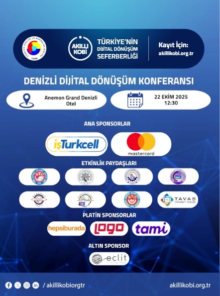 Denizli Haber - Etkinlik kapsamında; Akıllı KOBİ platformu ve KOBİ’lerin dijital dönüşüm süreçleri, geleceği şekillendiren teknolojiler, e-ticarette lojistik çözümleri, iş süreçlerinin dijitalleşmesi, ödeme sistemleri ve bulut bilişim gibi başlıklar ele alınacaktır.