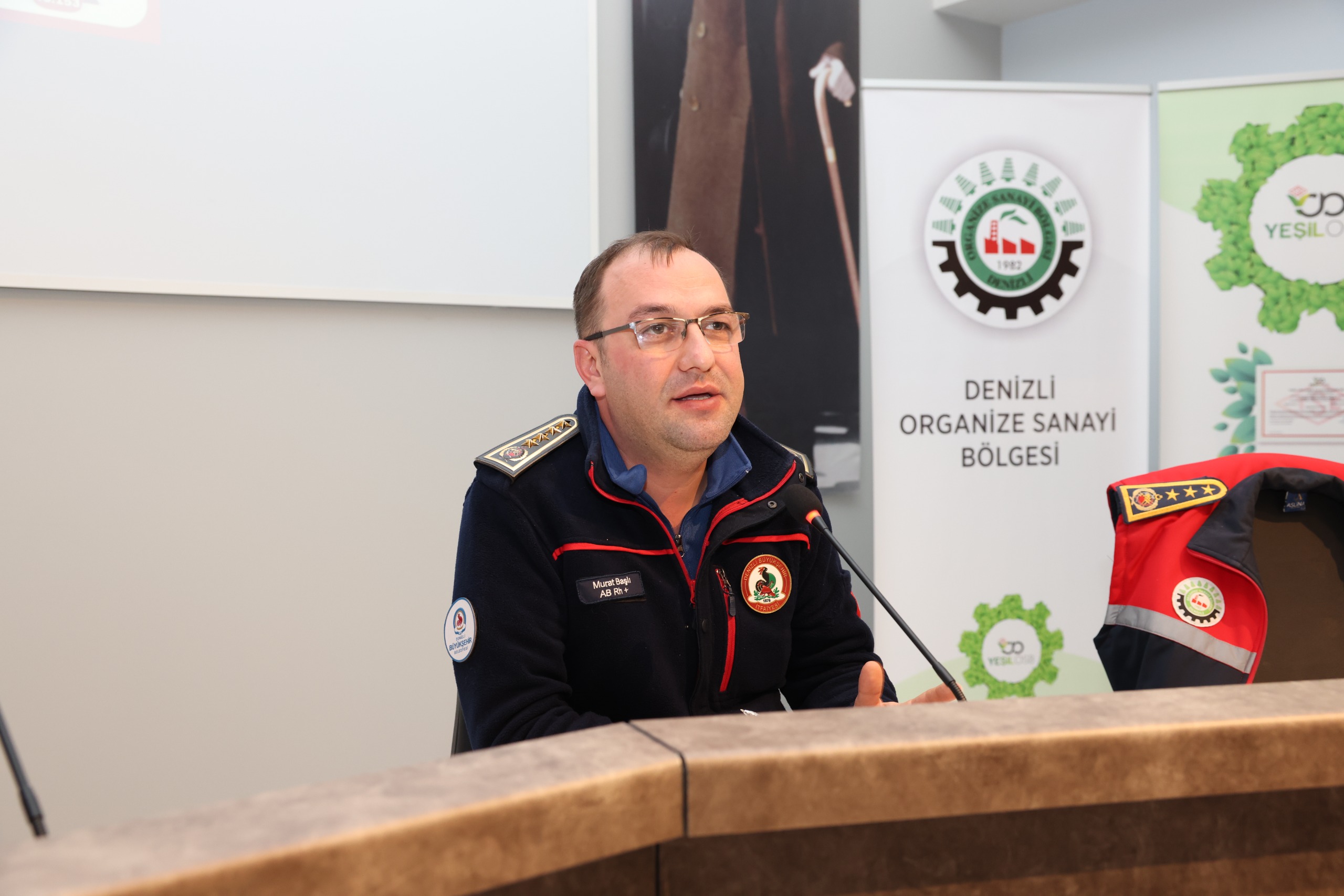 Denizli OSB Konferans Salonu’nda gerçekleştirilen program kapsamında yapılan sunumlarda; sivil savunma planlarının hazırlanması, afetlere karşı farkındalığın artırılması ve sanayi tesislerinde yangın güvenliği konularında bilgilendirme yapıldı.