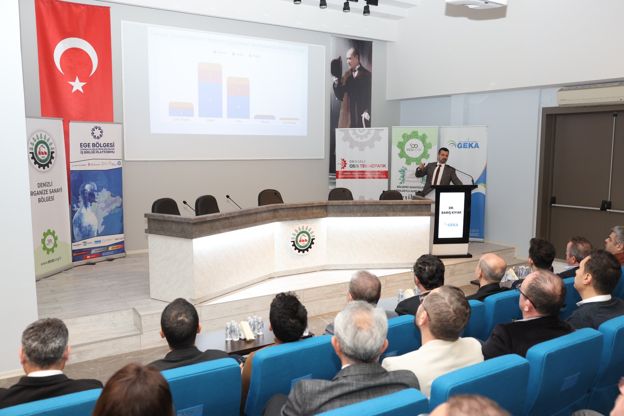 Denizli Haber - Denizli OSB Konferans Salonu’nda düzenlenen toplantıya; Denizli OSB ve Denizli OSB Teknopark Yönetim Kurulu Başkanı Derya Baltalı, Yönetim Kurulu Başkan Vekili Selim Yaymanoğlu, Pamukkale Üniversitesi Rektör Yardımcısı ve Denizli OSB Teknopark Genel Müdürü Prof. Dr. Ersan Öz, PAÜ Teknokent Genel Müdürü Prof. Dr. İbrahim Aksel, GEKA Genel Sekreteri Ümit Gülyağı, GEKA Sanayi Politikaları Birim Başkanı Dr. Barış Kıyak, DEGİAD Başkanı Kemal Sözkesen, Ege Bölgesi’ndeki Teknoparkların yöneticileri, sanayiciler ve davetliler katıldı.