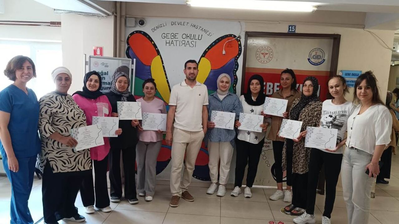 Sağlık Haber - Denizli Devlet Hastanesi Gebe Okulu'nda, anne adaylarına yönelik kapsamlı eğitim düzenlendi. Eğitimlerde anne adaylarına normal doğumun önemi, nefes ve gevşeme egzersizleri, masaj teknikleri, anne sütü ve emzirme, süt sağma ve saklama koşulları, yenidoğan bebek bakımı ile yenidoğan taramaları hakkında teorik ve uygulamalı eğitim düzenlendi.