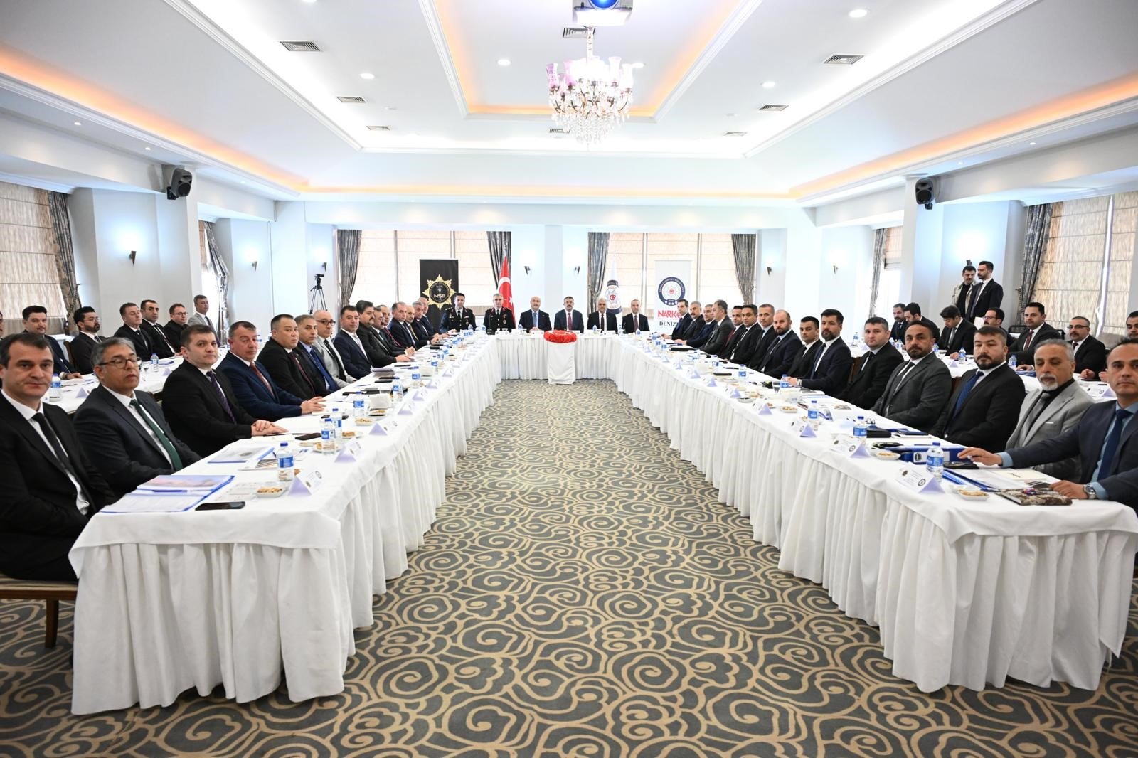 Denizli Haber - Denizli, narkotikle mücadelede bölge toplantısına ev sahipliği yaptı. İçişleri Bakan Yardımcısı Ali Çelik ve Denizli Valisi Yavuz Selim Köşger'in teşrifleri Emniyet Genel Müdür Yardımcısı Dr. Ömer Urhal, Jandarma Genel Komutanlığı Narkotik Suçlarla Mücadele Daire Başkanı Jandarma Kıdemli Albay Güven Öngören, bölge illerin emniyet müdürlerinin ve narkotik suçlarla mücadele şube müdürlerinin katılımlarıyla Narkotik Suçlarla Mücadele Başkanlığı Bölge Değerlendirme Toplantısı gerçekleştirildi. Toplantıda; narkotik suça zemin hazırlayan unsurların ortadan kaldırılması ve gerekli önlemlerin alınması, narkotik madde imalatı, kaçakçılığı, kullanımı, özendirilmesi ve bu alanda ilgili kamu ya da özel kurum ve kuruluşlarla koordinasyon içerisinde iş birliği çalışmaları yürütülmesi ve Türkiye'nin stratejik konumu nedeniyle karşı karşıya kaldığı risklerin önlenmesi gibi hususlar ele alındı.