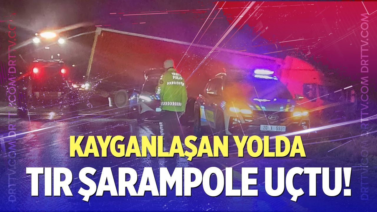 Edinilen bilgiye göre; Manisa’dan Denizli yönüne seyir halinde olan yüklü tır, Yenicekent Kavşağı yakınlarına geldiğinde yağış nedeniyle kayganlaşan yolda kontrolden çıktı.